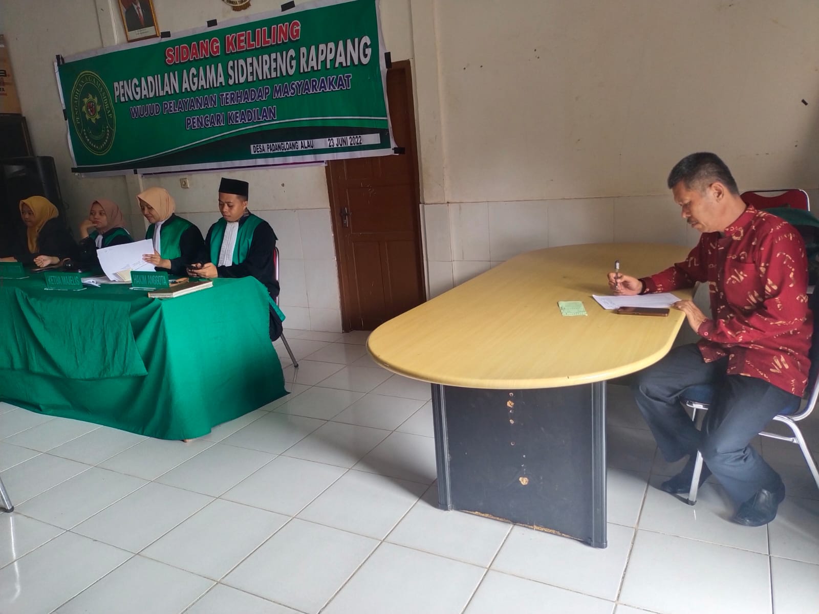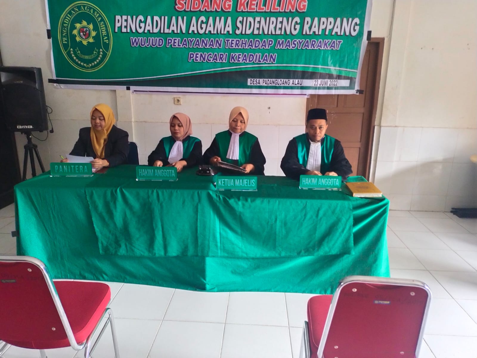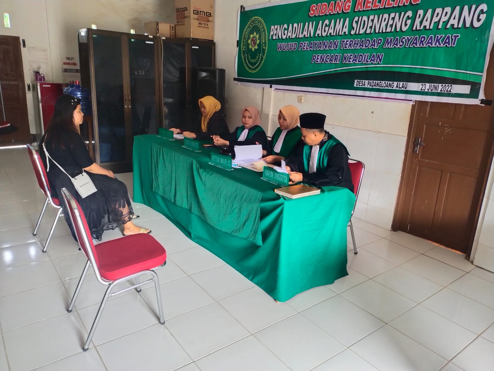 Kamis, 23 Juni 2022 Pengadilan Agama (PA) Sidenreng Rappang melaksanakan sidang keliling di Desa Padangloang Alau yang di pimpin langsung oleh Ketua Pengadilan Agama (PA) Sidenreng Rappang, Mun’amah, S.H.I., M.H. sebagai Ketua Majelis, Syaraswati Nur Awalia,S.Sy dan Heru Fachrurizal, S.H.I masing-masing sebagai Hakim Anggota serta Panitera Pengganti Tri Astuti, S.H.