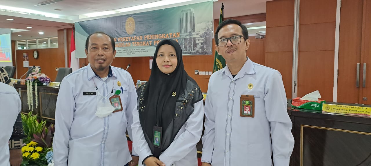 Hari ini, Senin (4/7) merupakan hari bersejarah bagi Pengadilan Agama Sidenreng Rappang, pasalnya tepat pada hari ini Ketua Pengadilan Agama Sidenreng Rappang didampingi Sekretaris Andi Taufik Nasri, S.Kom, & Panitera Shafar Arfah, S.H., M.H. memenuhi surat undangan dari Sekretaris Mahkmah Agung perihal penyerahan penetapan peningkatan kelas pengadilan tingkat pertama. Kegiatan tersebut dihadiri secara langsung oleh Wakil Ketua Mahkamah Agung RI Non Yudisial dan Sekretaris Mahkamah Agung RI. Turut hadir dalam kegiatan tersebut Direktur Jenderal Badan Peradilan Agama MA RI dan Kepala Biro Perencanaan Mahkamah Agung RI.