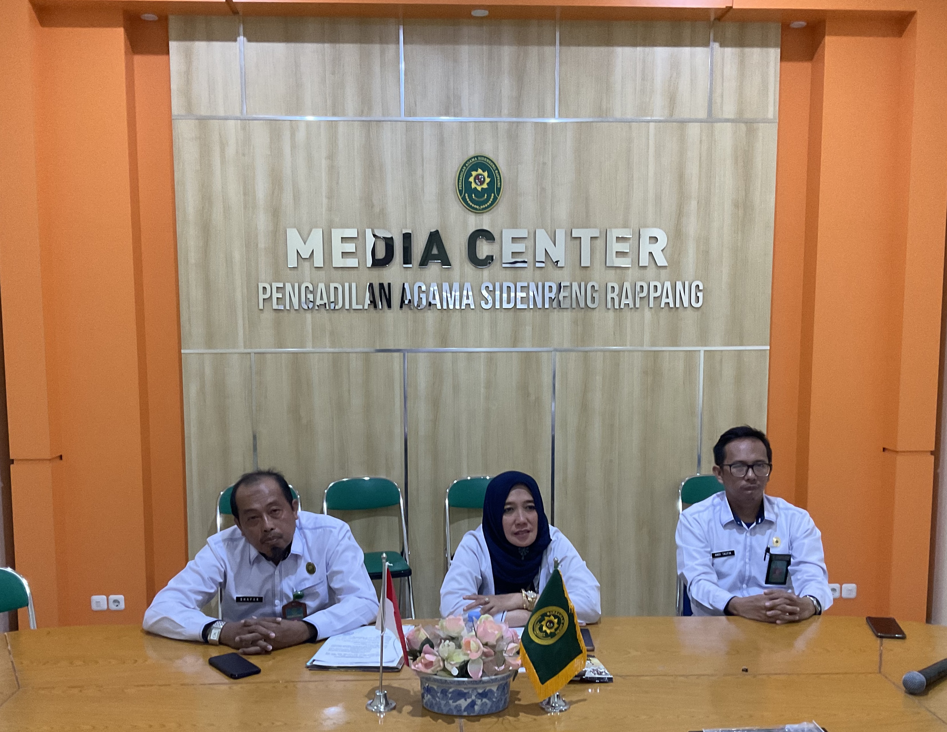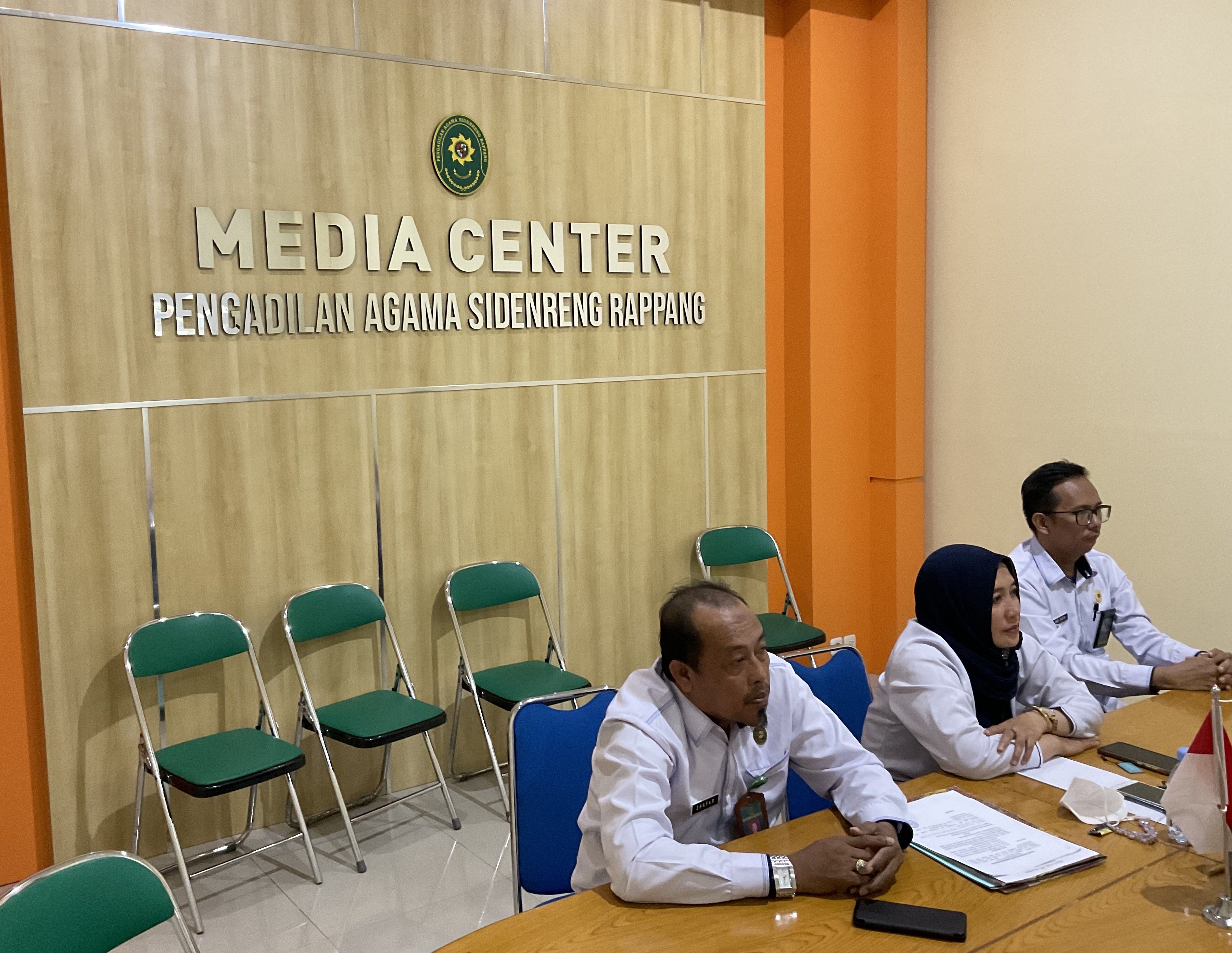 Senin, 3 Oktober 2022 | Bertempat di ruang Media Center Pengadilan Agama Sidenreng Rappang, ibu ketua Pengadilan Agama Sidenreng Rappang HJ. Hidayani Paddengngeng, Lc., M.H ditemani oleh Panitera bapak Shafar Arfah, S.H., M.H. serta sekretaris bapak Andi Taufik Nasri, S.Kom mengikuti acara zoom yang diselenggarakan oleh Direktorat Badan peradilan Agama Mahkamah Agung Republik Indonesia dalam acara Penandatanganan Nota Kesepahaman dengan Kementrian Pemberdayaan Perempuan dan Pemberdayaan Perempuan Kepala Keluarga (PEKKA).
