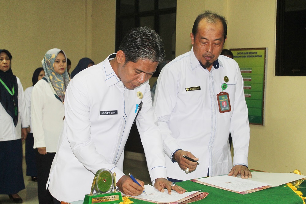 Senin, 10 Oktober 2022, Pukul 08.00 WIB, bertempat di Ruang Sidang Utama Pengadilan Agama Sidenreng Rappang, dilaksanakan Pembacaan dan Penandatanganan Pakta Integritas yang dipimpin langsung oleh Ketua Pengadilan Agama Sidenreng Rappang Ibu Hj. Hidayani Paddengngeng, Lc. M.H. dan diikuti oleh seluruh aparatur Pengadilan Agama Sidenreng Rappang yang terdiri dari Hakim, Panitera, Pejabat Struktural dan Fungsional, dan Staf Pengadilan Agama Sidenreng Rappang.