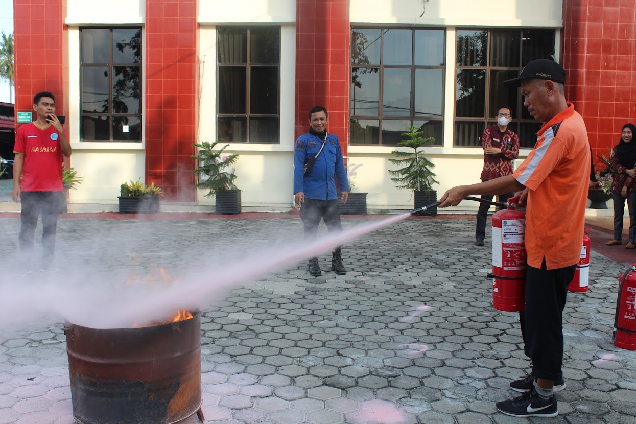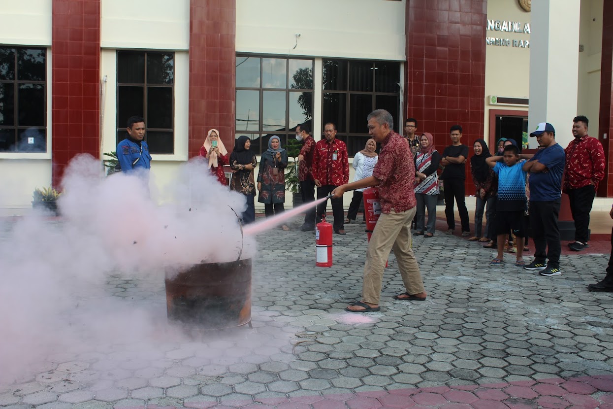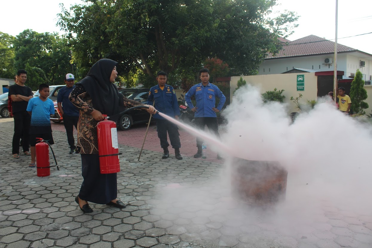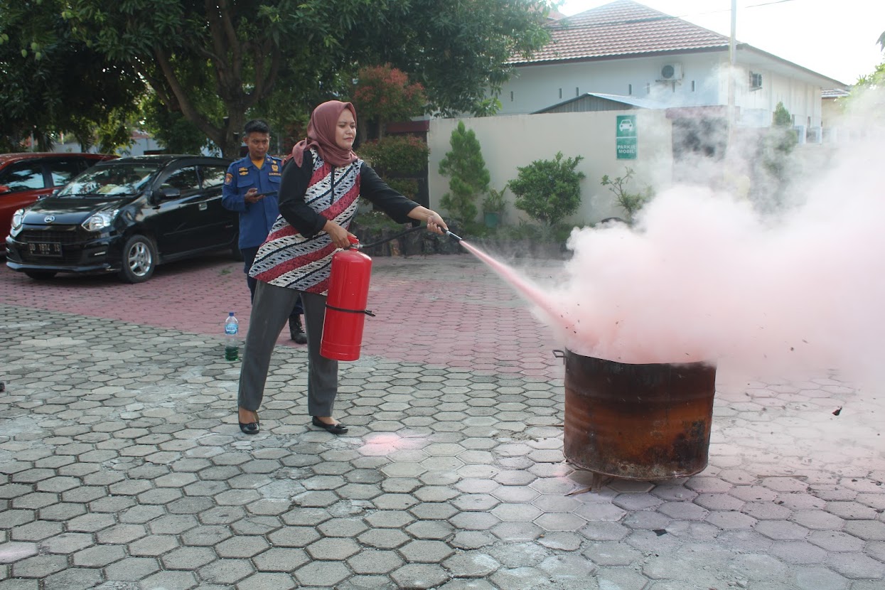 Acara selanjutnya praktik tentang penggunaan alat-alat pemadam kebakaran yang dilakukan seluruh Pegawai Pengadilan Agama Sidenreng Rappang secara bergantian mempraktikan langsung cara pemadaman api menggunakan Alat Pemadam Api Ringan (APAR).