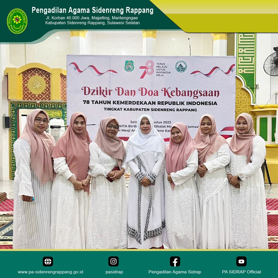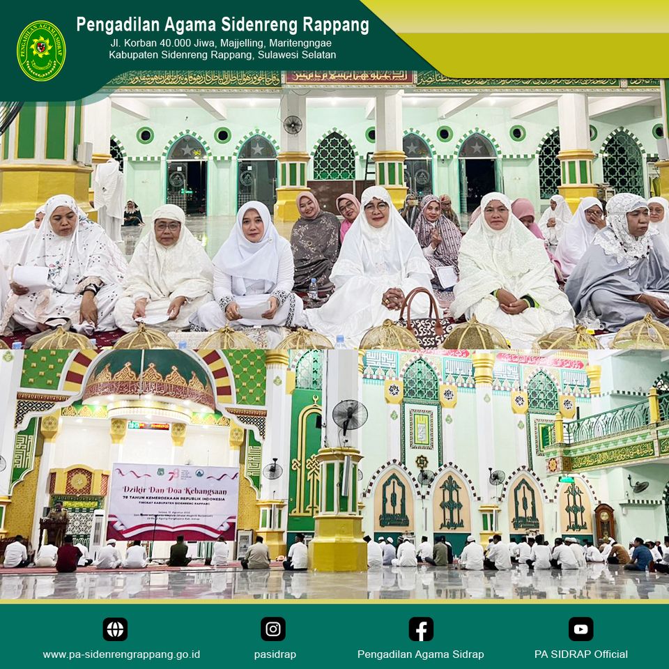 Sidenreng Rappang | 15 Agustus 2023, Pengadilan Agama Sidenreng Rappang ikuti kegiatan Zikir Kebangsaan dalam rangka memeriahkan peringatan Hari Ulang Tahun ke-78 Republik Indonesia Tingkat Kabupaten Sidenreng Rappang yang dilaksanakan di Masjid Agung Sidrap.