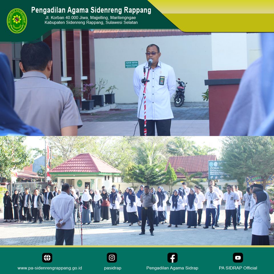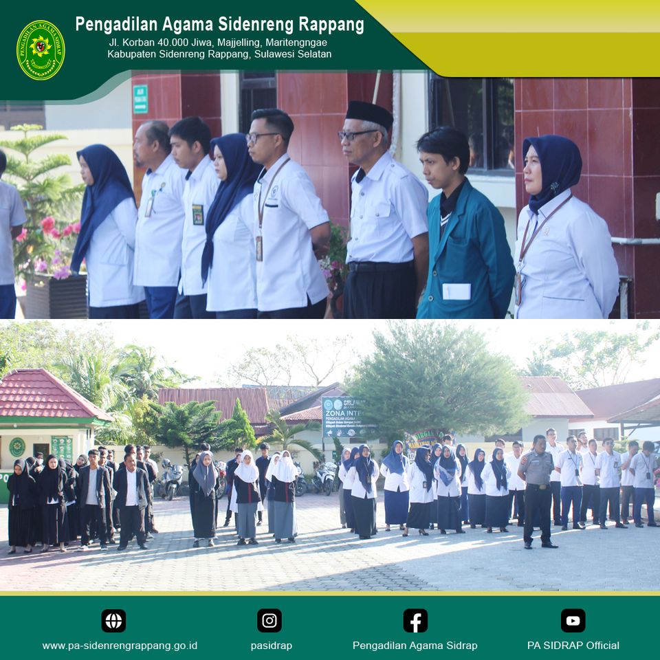 Sidenreng Rappang | 28 Agustus 2023, Pengadilan Agama Sidenreng Rappang laksanakan Apel Senin pagi di Halaman Kantor Pengadilan Agama Sidenreng Rappang dengan pembina apel yaitu Wakil Ketua Pengadilan Agama Sidenreng Rappang, Bapak H. Jamaluddin, S.Ag., S.E., M.H. yang diikuti seluruh pegawai Pengadilan Agama Sidenreng Rappang, Rektor Institut Agama Islam DDI Sidenreng Rappang, Dosen Pembimbing PPL Mahasiswa Institut Agama Islam DDI Sidenreng Rappang, Mahasiswa PPL Institut Agama Islam DDI Sidenreng Rappang, serta siswa SMK Negeri 1 Sidenreng Rappang dan SMK Negeri 2 Sidenreng Rappang.