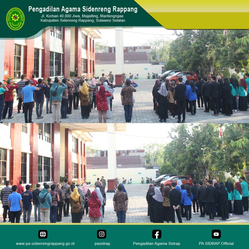 Sidenreng Rappang | 29 September 2023, Pengadilan Agama Sidenreng Rappang laksanakan Apel Jumat Sore di Halaman Kantor Pengadilan Agama Sidenreng Rappang dengan pembina apel yaitu Hakim Pengadilan Agama Sidenreng Rappang Bapak Fahmi Arif, S.H.. yang diikuti pegawai Pengadilan Agama Sidenreng Rappang, Mahasiswa PPL Institut Agama Islam DDI Sidenreng Rappang dan Institut Agama Islam Negeri Parepare serta siswa PKL SMK Negeri 1 Sidenreng Rappang dan SMK Negeri 2 Sidenreng Rappang.