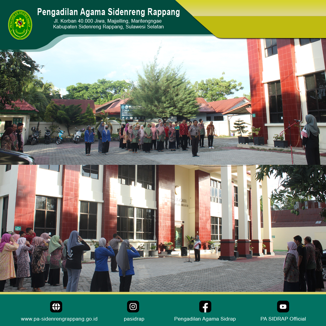 Sidenreng Rappang | 8 Desember 2023, Pengadilan Agama Sidenreng Rappang laksanakan Apel Jumat Sore di Halaman Kantor Pengadilan Agama Sidenreng Rappang dengan pembina apel yaitu Hakim Pengadilan Agama Sidenreng Rappang, Syaraswati Nur Awaliah, S.Sy. yang diikuti aparatur Pengadilan Agama Sidenreng Rappang, mahasiswa MBKM Institut Ilmu Sosial dan Bisnis Andi Sapada, dan Petugas Posbakum.
