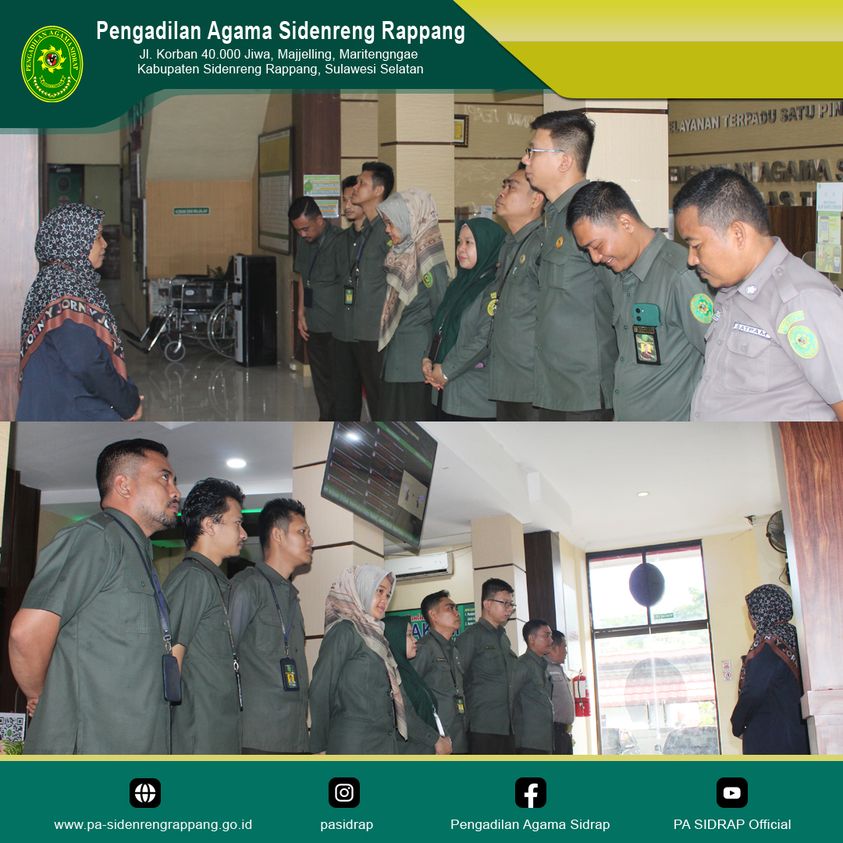 Sidenreng Rappang | 12 Desember 2023, Briefing pagi oleh Sekretaris Pengadilan Agama Sidenreng Rappang, Ibu Hj. Melda Sufri, S.Ag., M.H. kepada petugas Pelayanan Terpadu Satu Pintu (PTSP) dan Posbakum. Briefing kali ini mengingatkan tentang integritas, kedisiplinan, dan kebersihan. Selain itu, pada briefing kali ini juga menyampaikan untuk selalu memberikan pelayanan terbaik kepada masyarakat pencari keadilan.