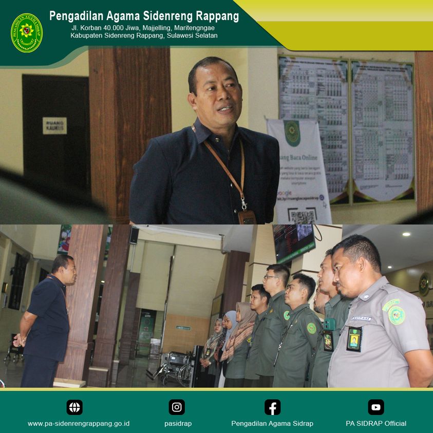 Sidenreng Rappang | 13 Desember 2023, Briefing pagi oleh Wakil Ketua Pengadilan Agama Sidenreng Rappang, H. Jamaluddin, S.Ag., S.E., M.H. kepada petugas Pelayanan Terpadu Satu Pintu (PTSP) dan Posbakum. Briefing kali ini menyampaikan tentang administrasi perkara, ketertiban dalam pelayanan dan persidangan, serta koordinasi secara berjenjang. Selain itu, pada briefing kali ini juga menyampaikan untuk meningkatkan kinerja untuk PA Sidenreng Rappang yang lebih baik lagi, "karena kalau bukan kita yang memperbaiki, siapa lagi", tutupnya.