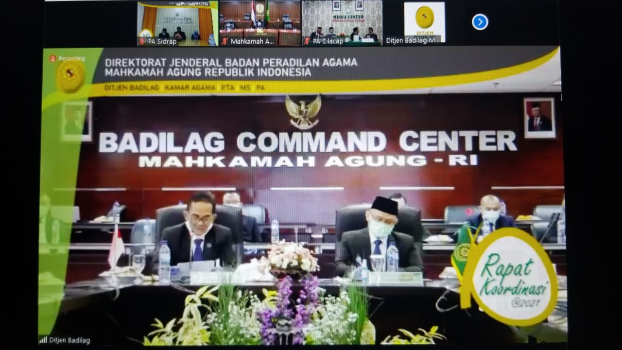Sidrap, 2 Maret 2021 | Ketua PA Sidrap Dr. Mukhtaruddin Bahrum, S.H.I., M.H.I, didampingi oleh Sekretaris Hj. Melda Sufri, S.Ag. dan Panitera H. Muhammad Basyir Makka, S.H., M.H. menghadiri acara "Rapat Koordinasi Ditjen Badilag Tahun 2021" Hari Pertama yang diselenggarakan oleh Direktorat Jenderal Badan Peradilan Agama melalui virtual, pada hari Selasa, 18/11/2020 bertempat di Ruang Media Center Pengadilan Agama Sidenreng Rappang. sesuai surat Direktur Jenderal Badan Peradilan Agama Nomor : 641/DJA/HM.00/2/2021, tanggal 25 Februari 2021.